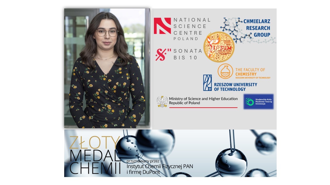 Z radością informujemy, że Faustyna Stopyra, studentka I roku studiów magisterskich na kierunku Technologia chemiczna na Wydziale Chemicznym Politechniki Rzeszowskiej, członkini grupy badawczej Chmielarz Research Group oraz Studenckiego i Doktoranckiego Koła Naukowego Inżynierii Chemicznej i Farmaceutycznej "IPSUM" znalazła się w gronie laureatów XV edycji Konkursu „Złoty Medal Chemii”, organizowanego przez Instytut Chemii Fizycznej PAN w Warszawie oraz firmę DuPont. Konkurs miał na celu wyłonienie autorów najlepszych prac licencjackich i inżynierskich z zakresu chemii i jej pogranicza. Wydarzenie objęte było patronatem honorowym Polskiego Towarzystwa Chemicznego, Komitetu Chemii Analitycznej PAN oraz Fundacji na rzecz Nauki Polskiej.