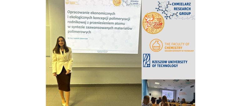 Dr inż. Izabeli Zaborniak dnia 6 maja wygłosiła kolokwium habilitacyjne podsumowujące monotematyczny cykl artykułów pt. "Opracowanie ekonomicznych i ekologicznych koncepcji polimeryzacji rodnikowej z przeniesieniem atomu w syntezie zaawansowanych materiałów polimerowych".