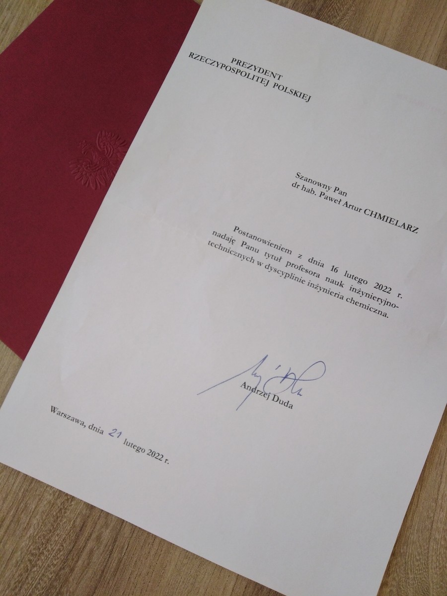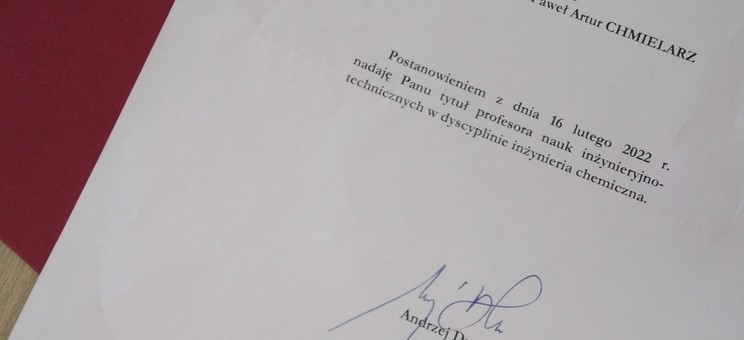 Prezydent Rzeczypospolitej Polskiej Andrzej Duda postanowieniem z dnia 16 lutego 2022 r. nadał tytuł profesora nauk inżynieryjno-technicznych dr. hab. inż. Pawłowi Chmielarzowi, kierownikowi Katedry Chemii Fizycznej na Wydziale Chemicznym Politechniki Rzeszowskiej. Profesor znalazł się w gronie najmłodszych profesorów tytularnych w Polsce – najmłodszego w naukach inżynieryjno-technicznych.